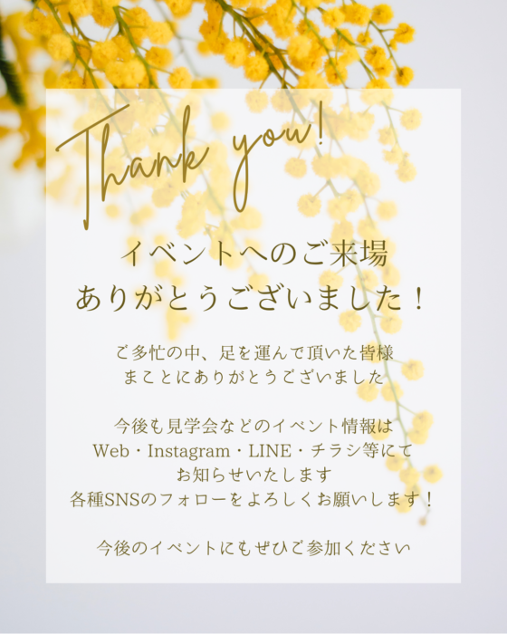 今後も見学会などのイベントを行う際は、Web・Instagram・LINE・チラシ等にて
