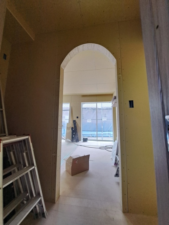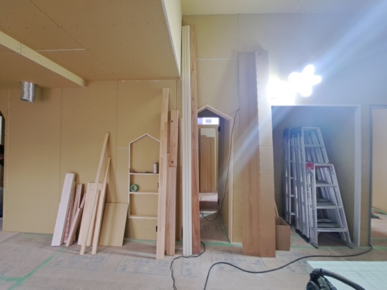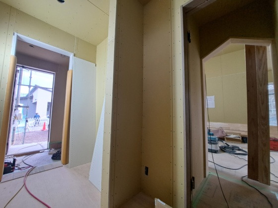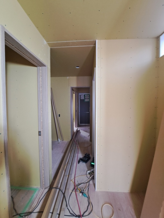廊下や各居室の出入口も形になり、動線計画が実際の空間として確認できるようになりました。
