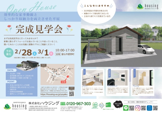 【予約優先制】2/28㈯・3/1㈰に完成見学会を開催します!!