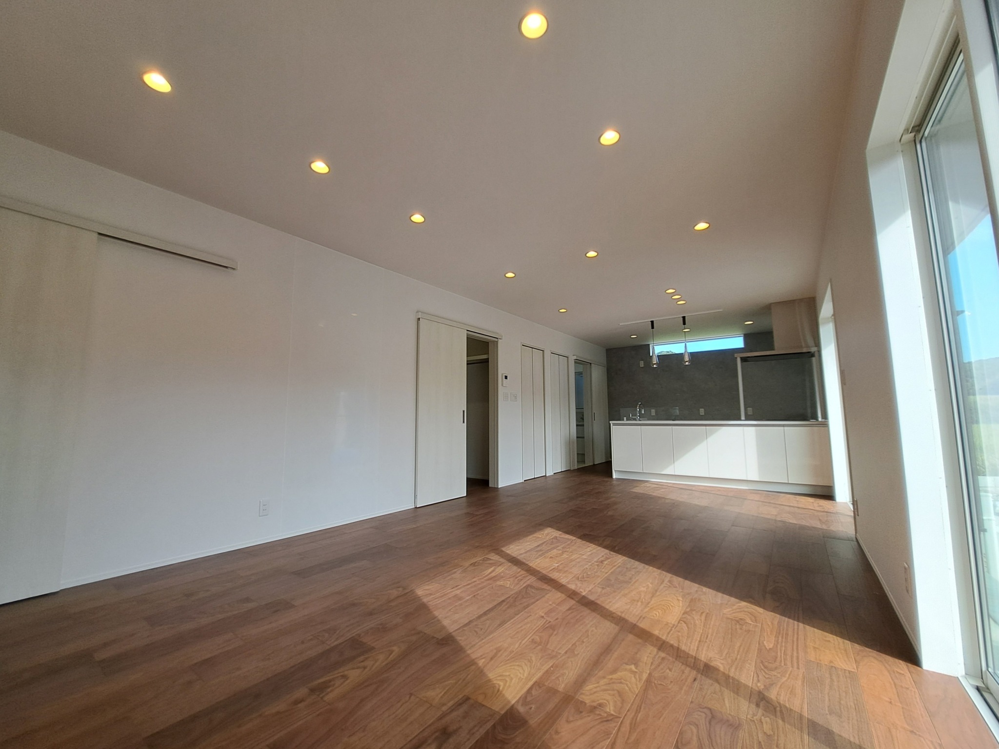 20畳のゆとりのあるLDKも全体が南面に面しているので、 一日を通してたっぷりと自然光が差し込み、 明るくぬくもりを感じる居心地のいい空間です。