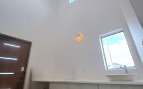 吹抜けになった玄関が圧倒的に広く明るく開放的なМ様邸。